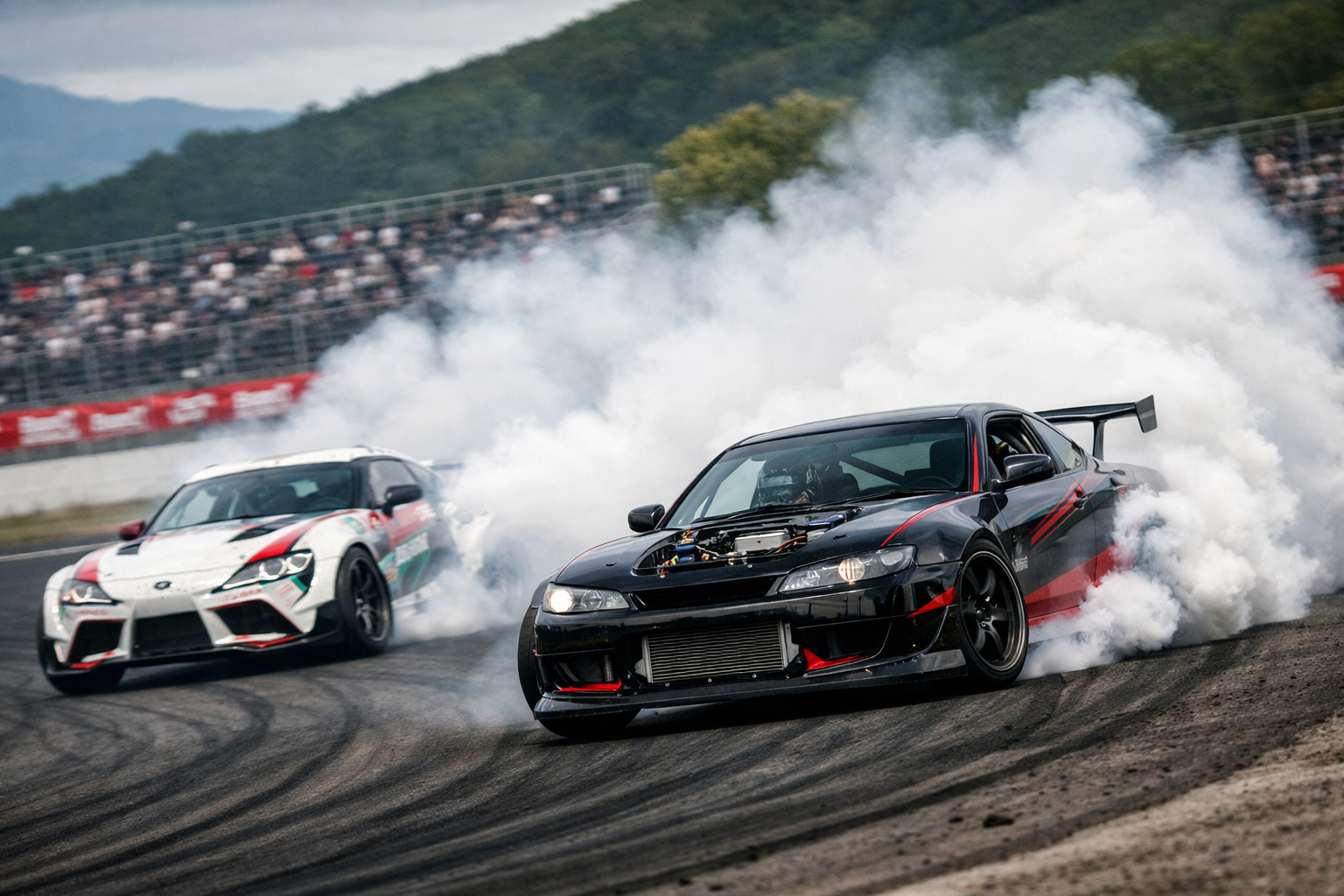 1,000馬力クラスのマシンが繰り出す迫力のドリフトバトルに加え、プロドライバーとの交流や体験コンテンツも充実。
