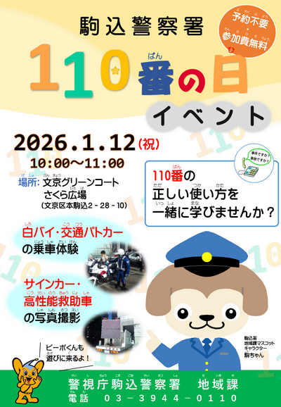 公式サイト:駒込警察署 駒込署 「110番の日」イベント 警視庁