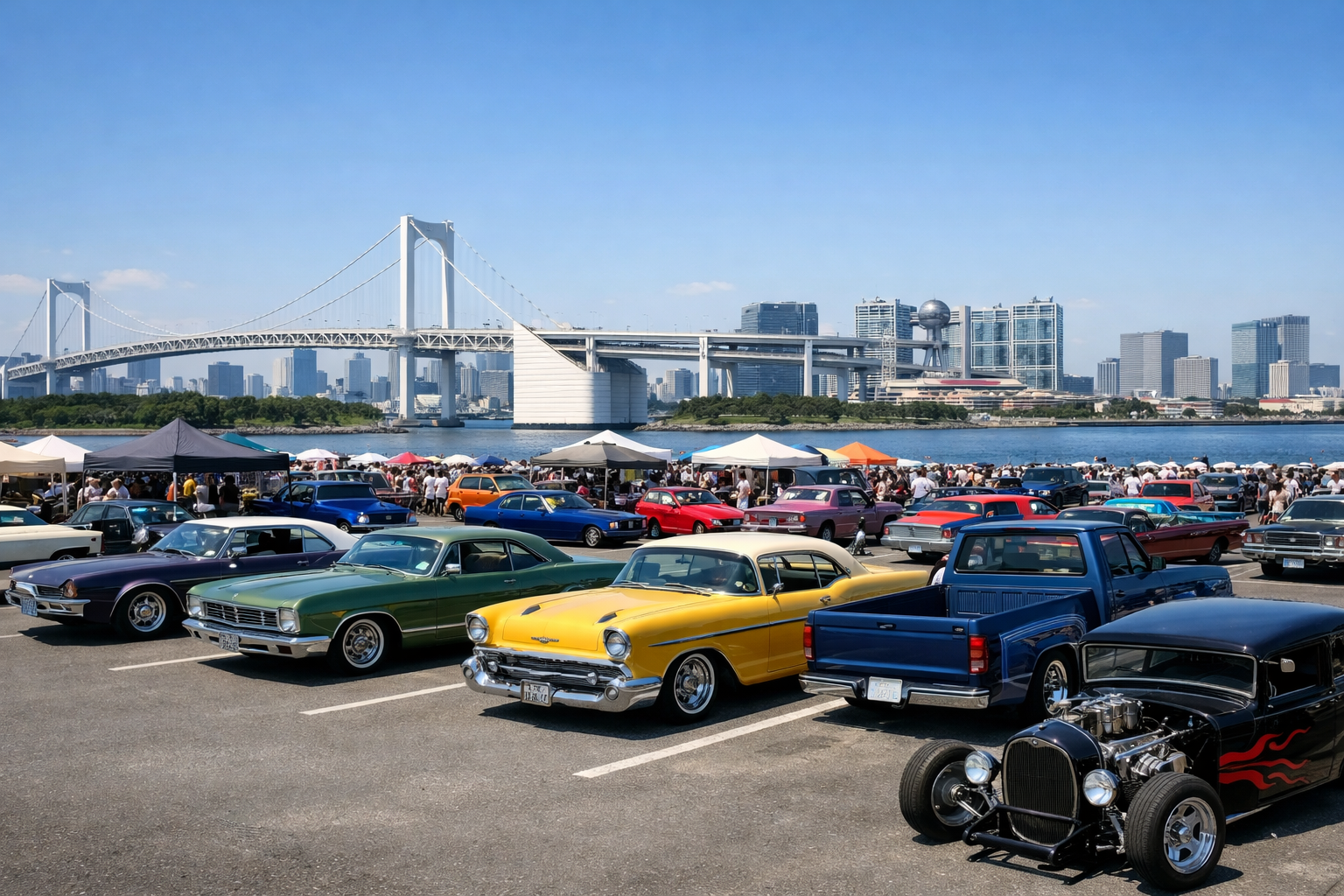 アメリカンカスタムを中心に、ホットロッド・ローライダー・トラッキン・国産カスタムまで幅広いジャンルの車両が集結します。