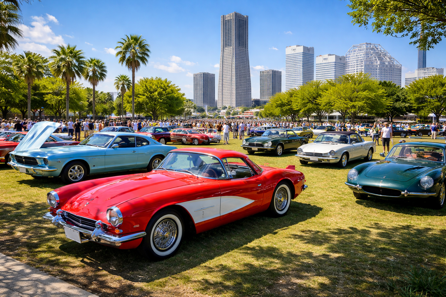 • 横浜の街並み×クラシックカーの屋外展示